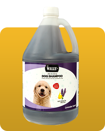 - Apply an adequate amount of Wally Dog Shampoo with Oatmeal and Keratin Protein.